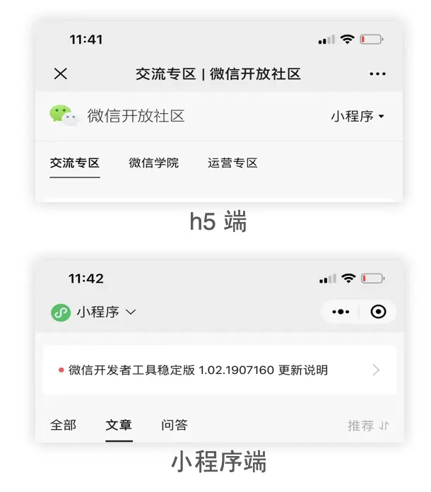 在整套方案应用的过程中,肯定也会有些定制化的需求,比如希望小程序端头部和 H5 端不同,不同端使用不同的交互设计: