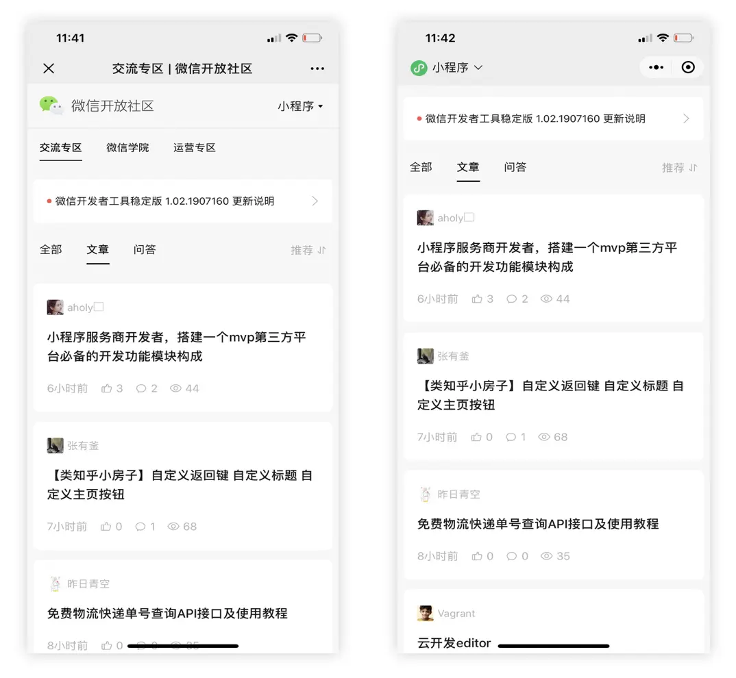 之所以会有 Kbone 这个方案出现,源自于一个需求:微信开放社区当时只有 Web 端,为了让信息可以更方便地传播、分享和使用,希望实现社区小程序版,交互体验尽量贴近于 Web 端。