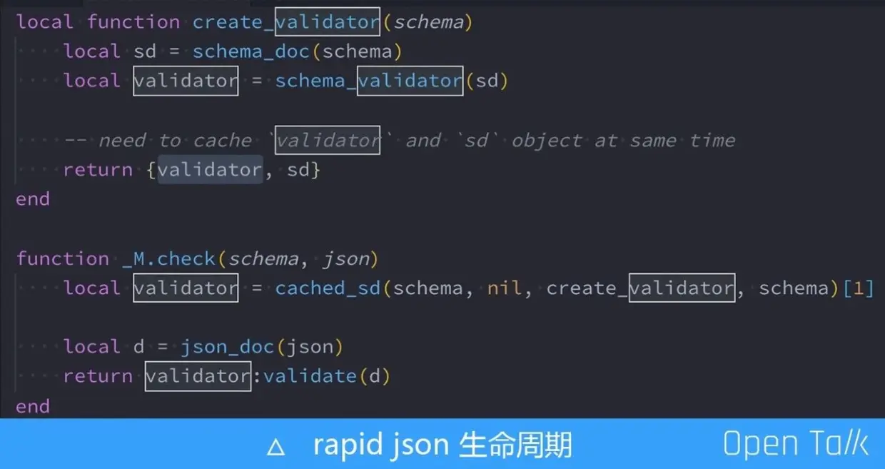因为 validator 是个 cdata ,内部有对 sd 对象的指针引用依赖,他们两个也就必须要有相同的声明周期,不能有某一项提前释放的情况。如果我们需要让两个对象有相同的生命周期,那么把它们放到同一个 table 中是最简单的方法。