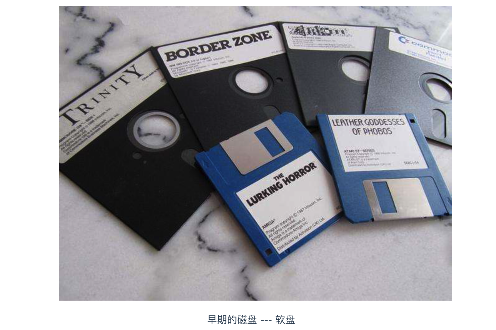 一般内存指的就是主存(负责存储CPU中运行的程序和数据);早起的磁盘指的是软磁盘(soft disk,简称软盘),就是下面这个