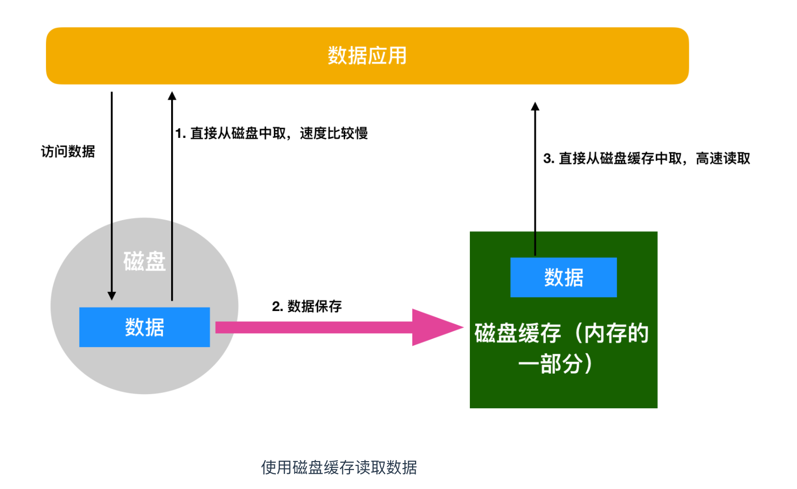 磁盘缓存指的是把从磁盘中读出的数据存储到内存的方式,这样一来,当接下来需要读取相同的内容时,就不会再通过实际的磁盘,而是通过磁盘缓存来读取。某一种技术或者框架的出现势必要解决某种问题的,那么磁盘缓存就大大改善了磁盘访问的速度。