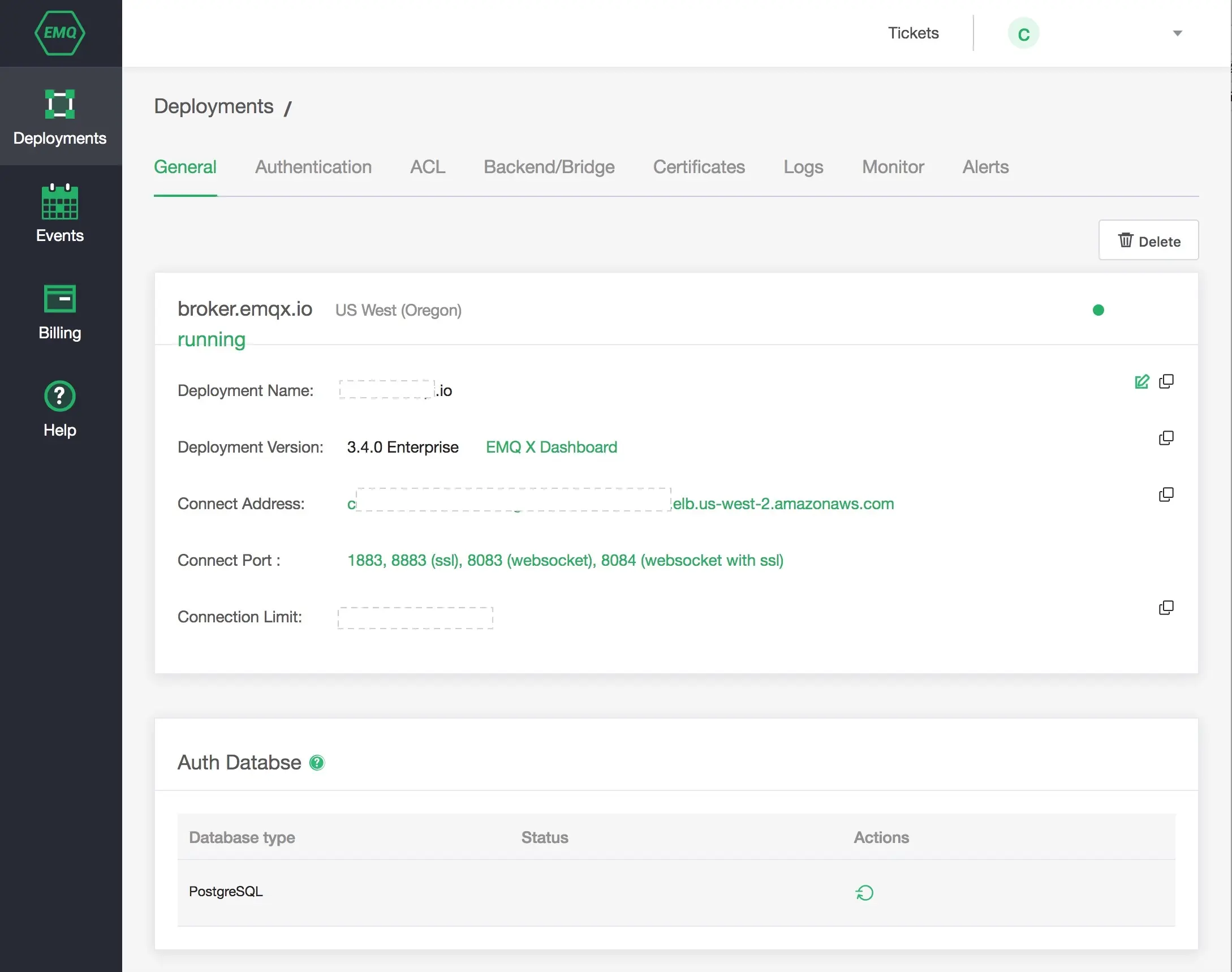 - 高安全:独享的 EMQ X Enterprise 集群,保证了数据的独立性;用户可以上传自己的证书实现与设备端的安全连接;通过绑定用户自己的独立域名