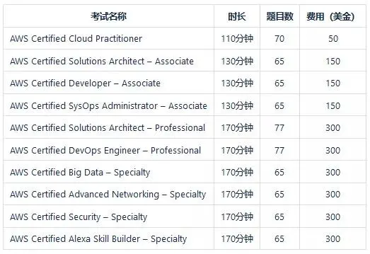 因为我最近在备考AWS,下面就详细介绍一下这个考试的各个门类。希望有志同道合的朋友一起备考,互相鼓励。
