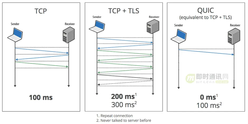 有关QUIC的详解请见:《技术扫盲:新一代基于UDP的低延时网络传输层协议——QUIC详解》。