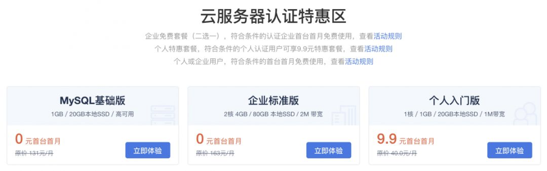 进入【特惠活动】下拉至【 云服务器认证特惠区】