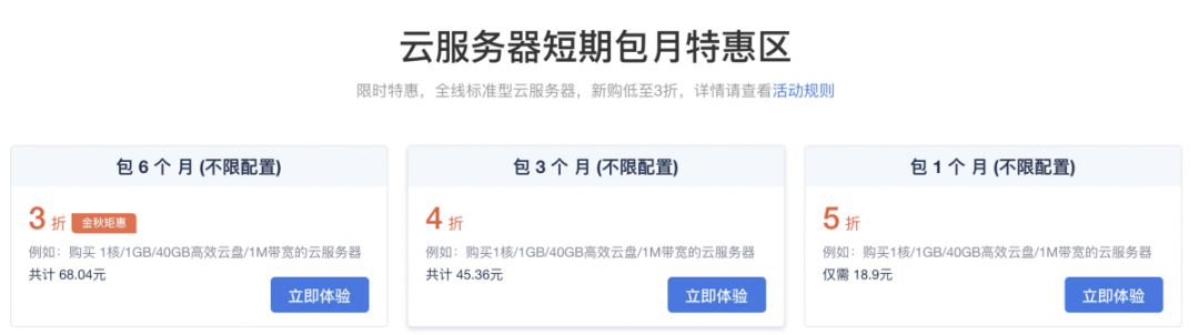 二、云产品特惠专区 果然手慢无了怎么办?老用户没资格怎么办?别着急,看这个,贴心的为大家准备了长期和短期两种云产品优惠方案,买就完事了~