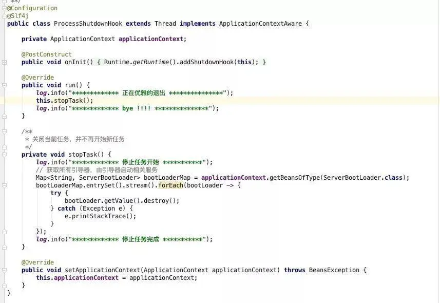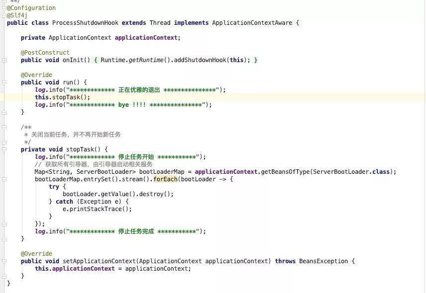 当然,优雅退出肯定也不能少呀,其实可以直接使用spring的优雅退出的,都是使用的同一个原理,注册jvm钩子。