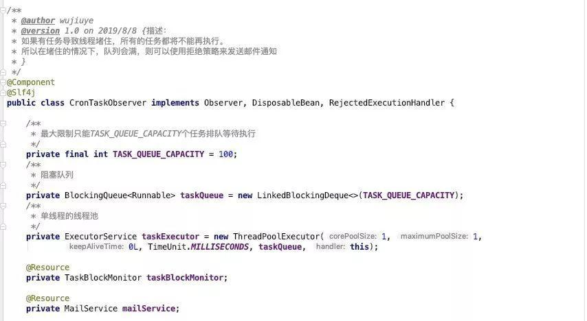 观察者模式:具体的定时任务事件执行者,即观察者。这里包含了监听器的内容,就是将事件转为任务放入单线程的线程池后,拿到Future,交给监听器监控任务的执行状态。