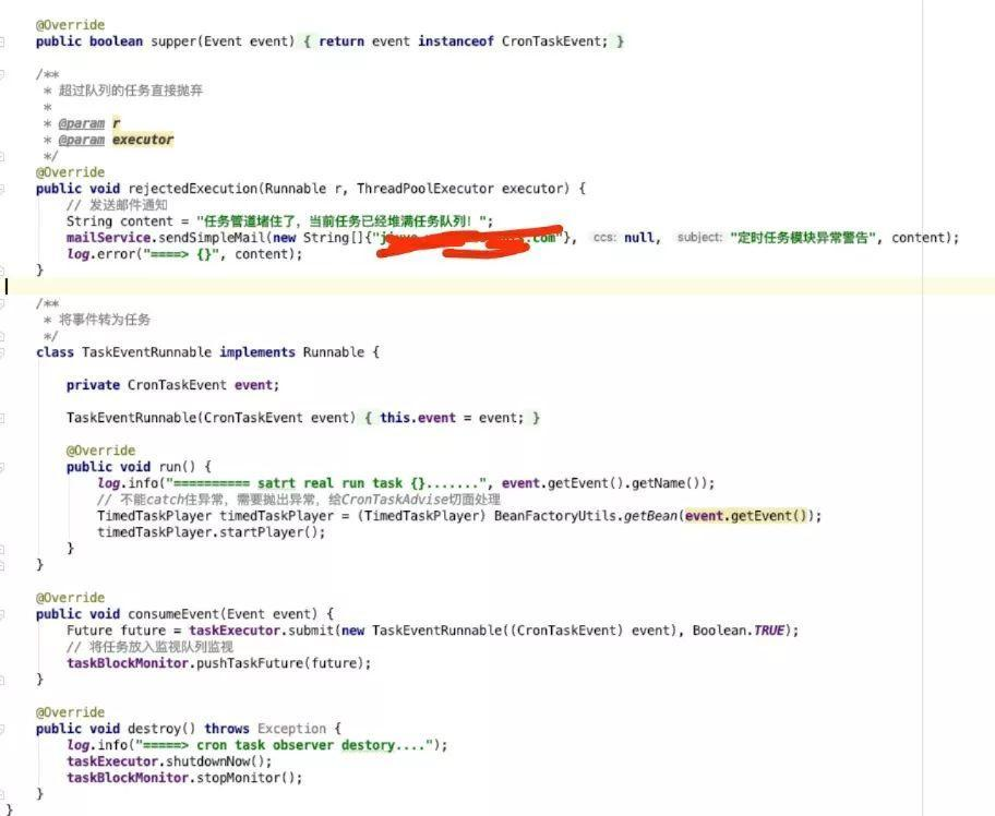 那么,何时发布的事件呢?就是定时任务到执行时间的时候。文章开头就埋下了一个点,就是定时任务接口TimedTaskPlayer为何不让子类直接实现run方法,为的就是可以在不改任务代码的情况下,实现让定时任务改为串行执行。