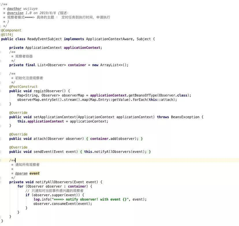 如何将定时任务控制串行执行,且不改动现有代码呢,如果改动太大就相当于重构了。这时候我想到了插件。插件我们常常用到,比如idea就有很多插件,再与我们贴近点的就是Mybatis的分页插件。插件,无外呼就是在某些任务开始之前插入埋点代码,其实也是AOP编程思想。所以我借鉴了插件这一思想,来实现不修改现有代码的情况下将定时任务串行执行。这里使用了观察者模式。