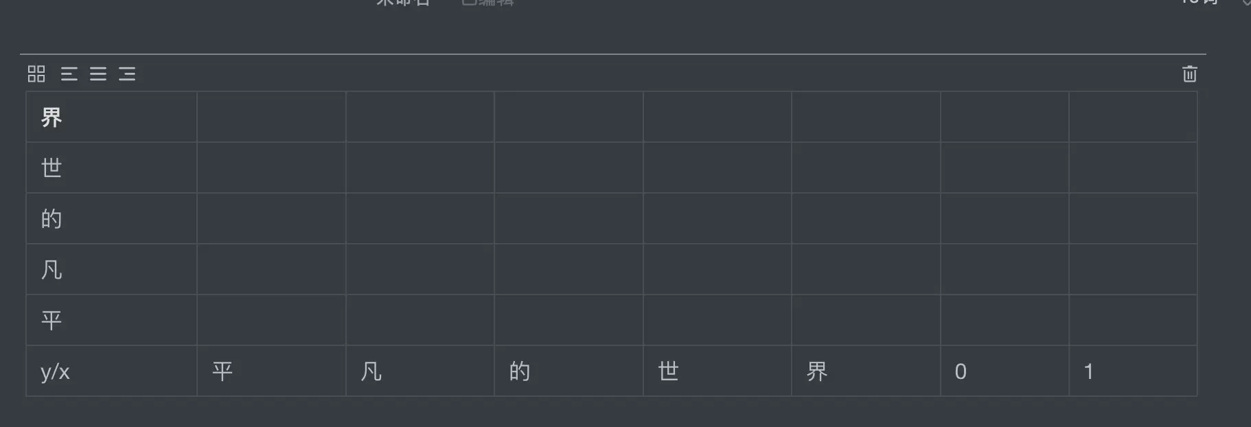 - 当x为1的时候,为 "平",那么对应的 y轴上的字符,如果相同的话设置为1。 如下图二
