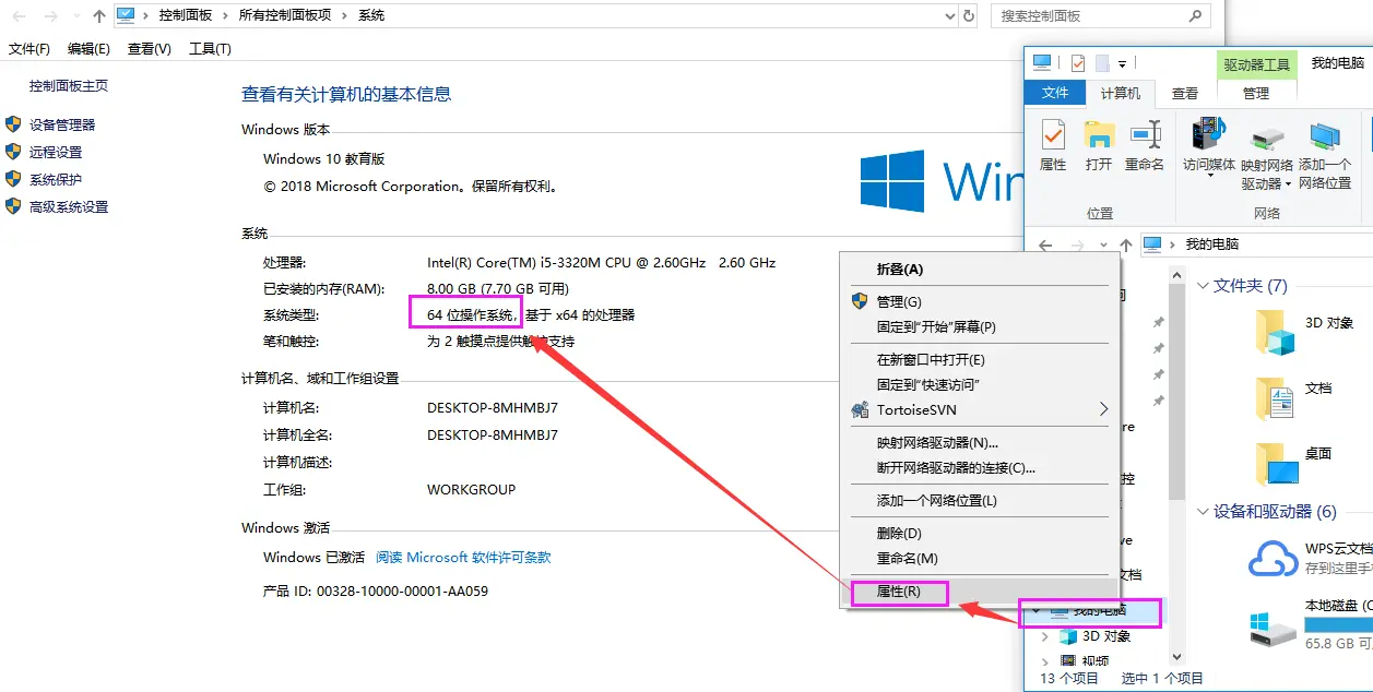 我的电脑--右键--属性