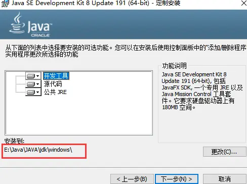 1)选择路径,我选择 : E:\Java\JAVA\jdk\windows