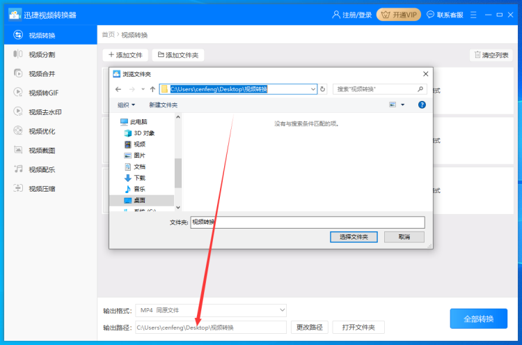 4、“输出路径”设置好后点击软件右上角的“转换”或右下角的“全部转换”按钮就可以把添加好的qlv格式转换成mp4并输出到指定的路径中了。