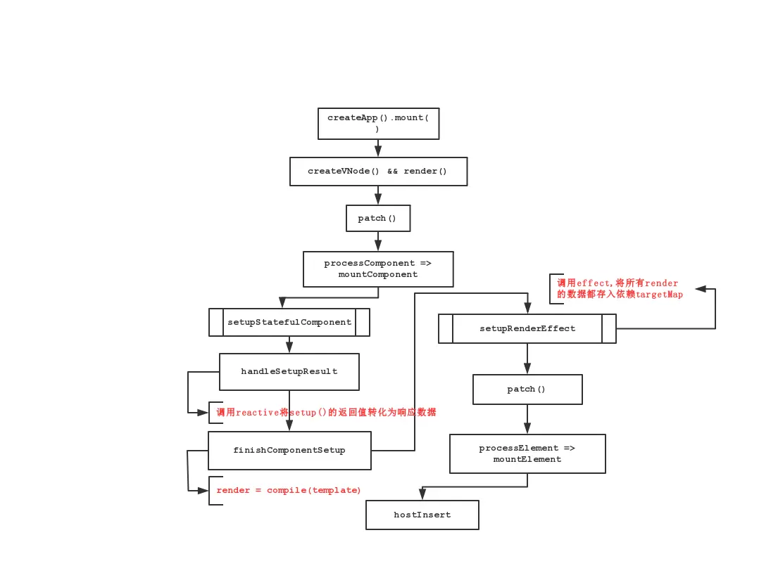 instance到页面,并将所有依赖存入targetMap。从而实现页面响应式。响应式原理可参考这篇文章:juejin.cn/post/684490…