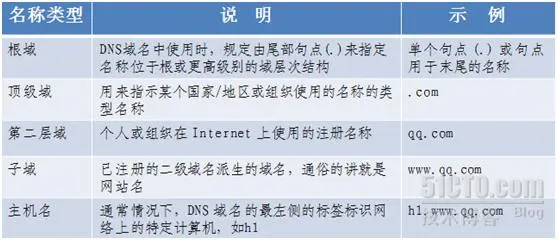 我们在前面有说到根DNS服务器,域DNS服务器,这些都是DNS域名称空间的组织方式。按其功能命名空间中用来描述 DNS 域名称的五个类别的介绍详见下表中,以及与每个名称类型的示例