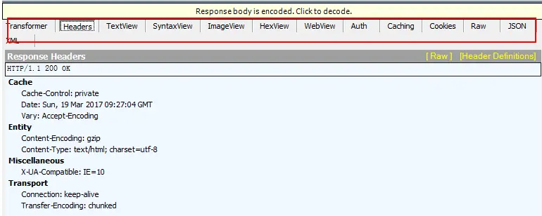 包含着我们需要的一些具体信息,比如cookie,html,image,后端返回的请求数据等等。这里需要注意,响应正文和响应头之间有一行空格,表示响应头的信息到空格为止,下图是fiddler抓到的请求正文,红色框中的:响应正文: