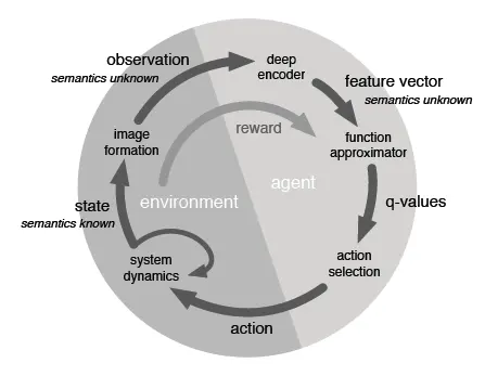 对于一般的对高纬度视频、语音数据进行控制的RL方法中,手动构建特征函数是非常费力的,所以本文采用深度学习技术来自己学习如何构建特征函数