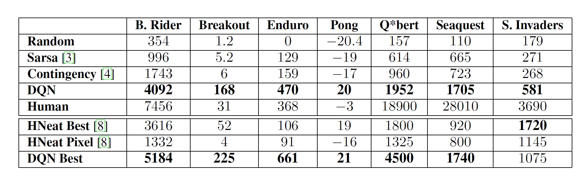 ϵ-greedy 的 ϵ (随即搜索的比重)前1百万次从1 下降到0.1,然后保持不变。这样一开始的时候就更多的是随机搜索,之后慢慢使用最优的方法。