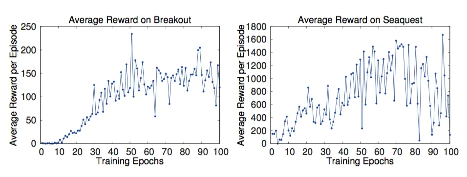 如何在训练的过程中估计训练的效果在RL上是个Challenge。毕竟不像监督学习,可以有training 和validation set。那么只能使用reward,或者说平均的reward来判定。也就是玩的好就是训练的好。