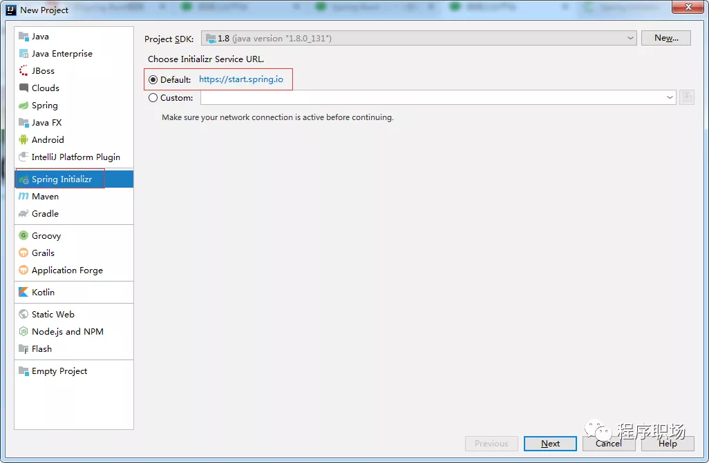 首先创建一个项目,创建时选择Spring Initializr,然后Next,如图: