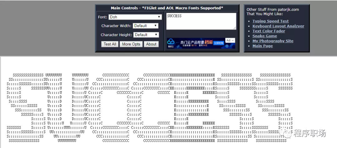 1,我们在 src/main/resources 下新建一个banner.txt2,通过网站 http://patorjk.com/software/taag/ 官网生成字符,如敲入的为 “SUCCESS”,将生成的字符复杂到banner.txt中生成字符 如下图: