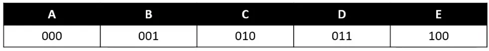 我们可以约定上面5个字母对应的编码。例如
