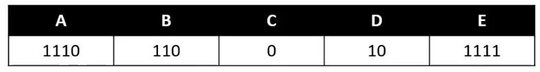 根据规则,left为0,right为1,可以得出5个字母对应的哈夫曼编码