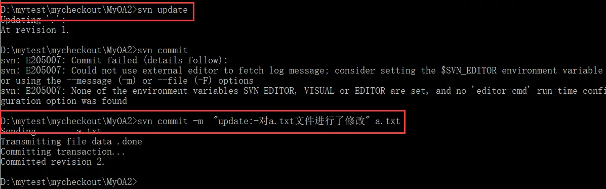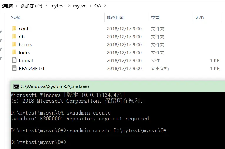 D:\mytest\mysvn\OA>svnadmin create D:\mytest\mysvn\OA