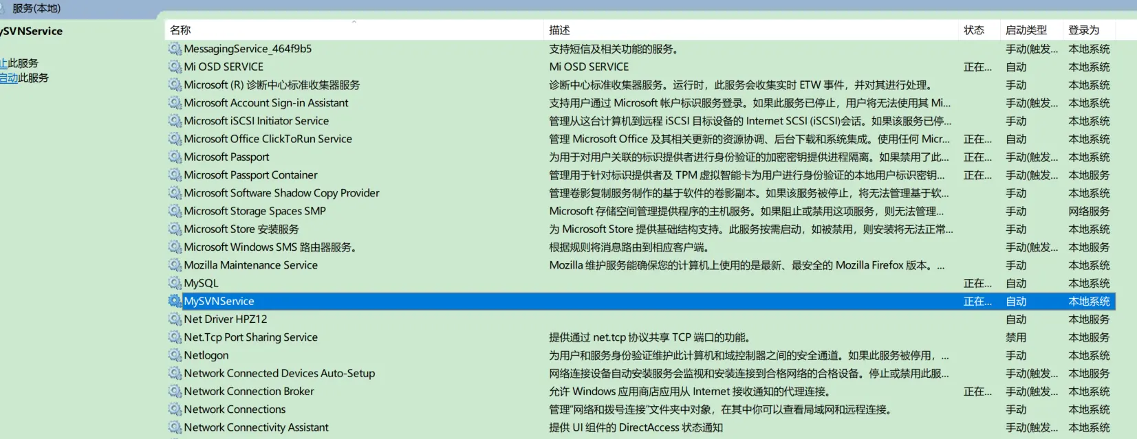 设置svn服务开机自启