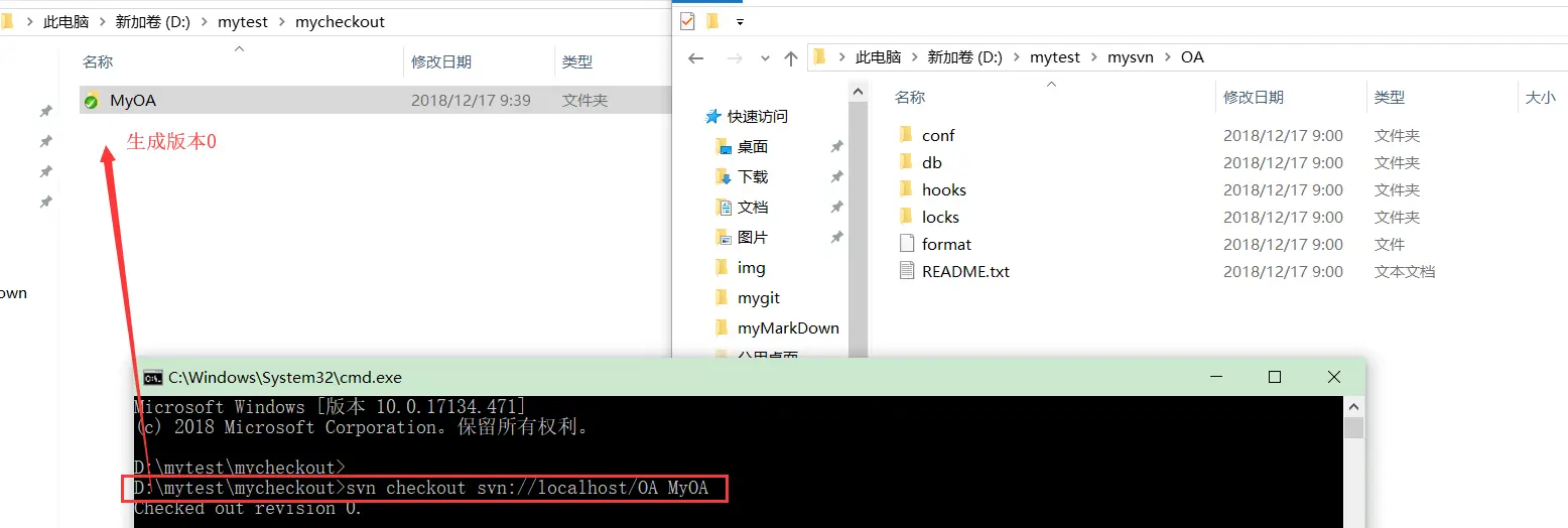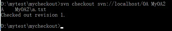 D:\mytest\mycheckout>svn checkout svn://localhost/OA MyOA