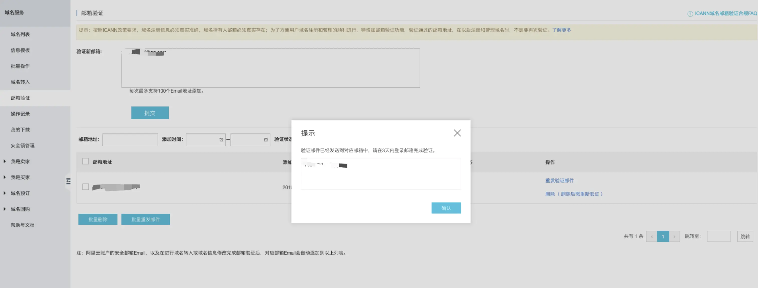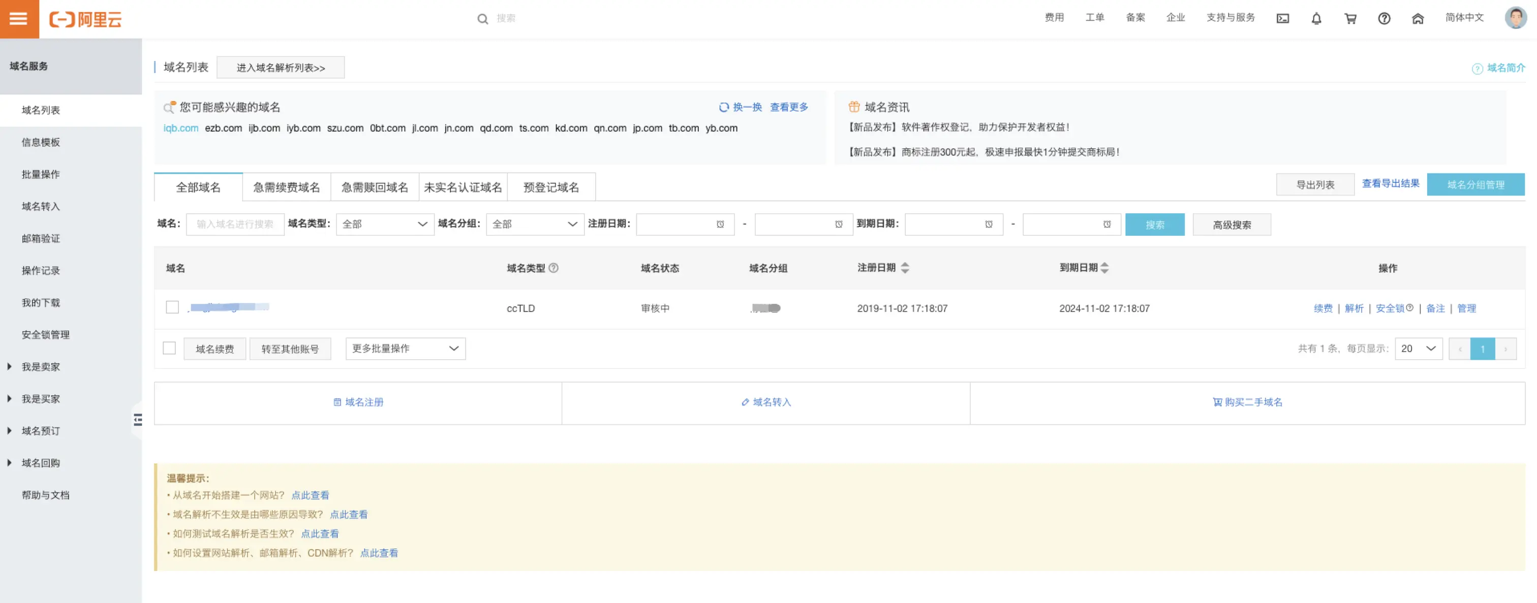 刷新刷新刷新,看到有了之后就差不多OK了,这个域名就是你的啦,剩下的差不多等着审核完就OK了,就可以安心用喽~