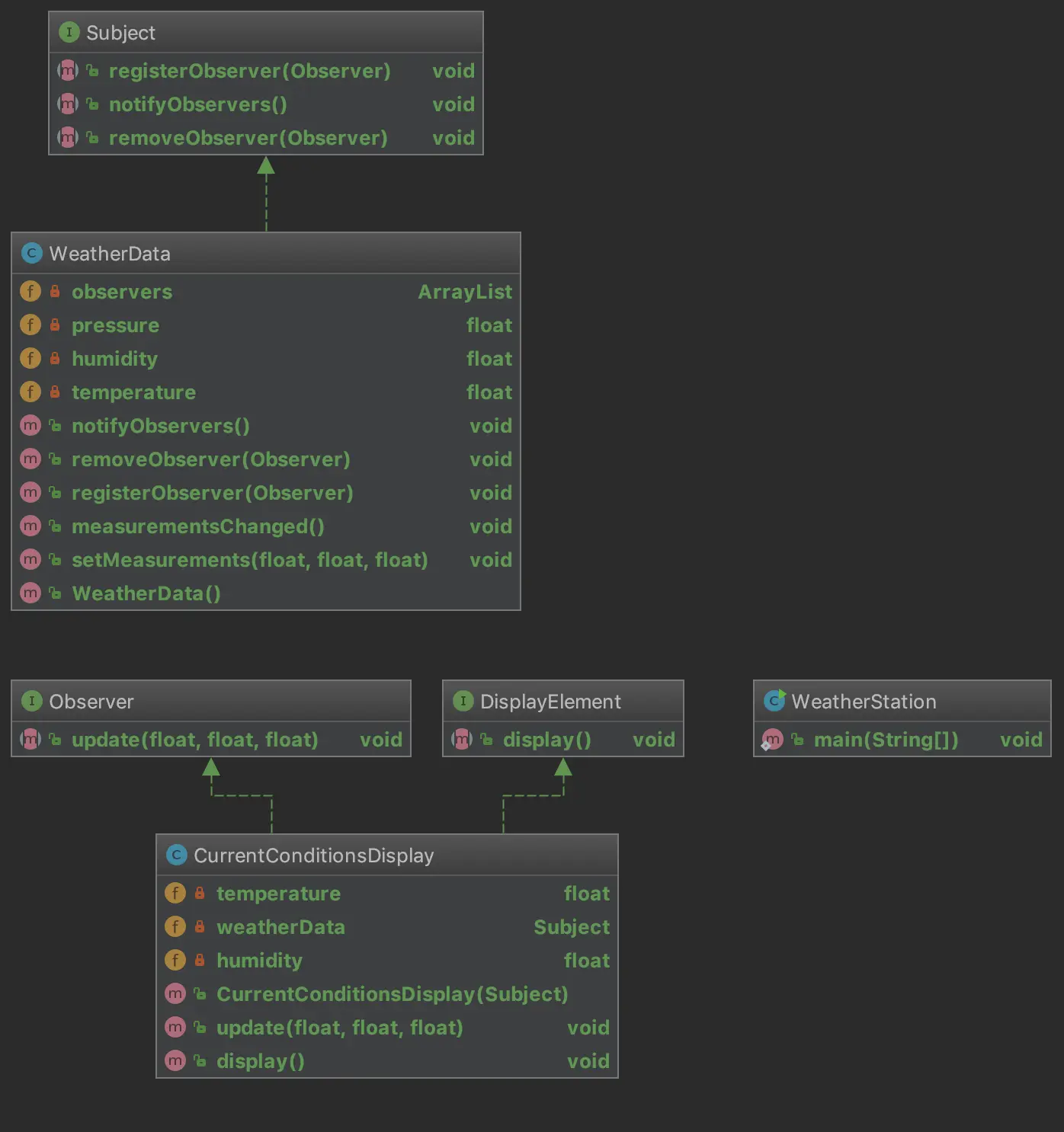 CurrentConditionsDisplay currentConditions = new CurrentConditionsDisplay(weatherData);
