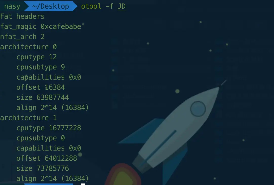 otool -f 文件名可以查看所有架构,如图: