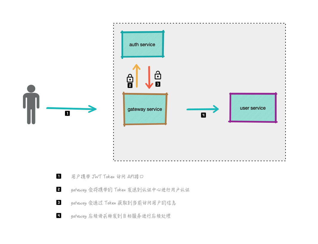 用户的访问基本上都是需要携带 JWT Token 的,gateway-service 在接收到请求之后,会向鉴权服务发送鉴权请求,获得授权之后可以得到当前访问的用户详细信息;如果检测到请求未经授权,那么 gateway-service 直接会返回未授权错误,保护内部服务访问安全。