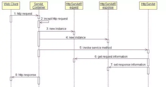 接着我们描述一下Tomcat与Servlet是如何工作的,首先看下面的时序图: