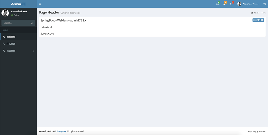 启动工程,然后就得到了一个带登录登出的基于AdminLTE的web服务工程
