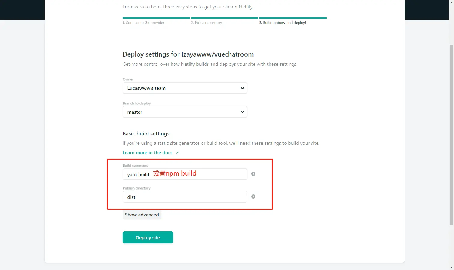 netlify部署的好处在于不用自己打包,而且在你每次代码更新到git以后它会自动帮你更新部署