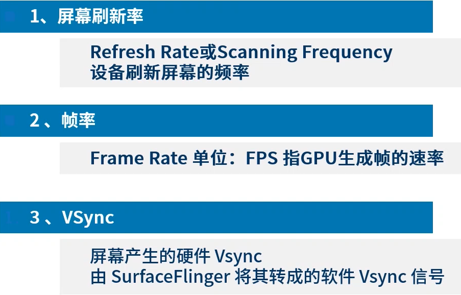 (1)Vertical Synchronization 垂直同步:VSync技术的引入主要是为了解决Tearing”(撕裂)现象;