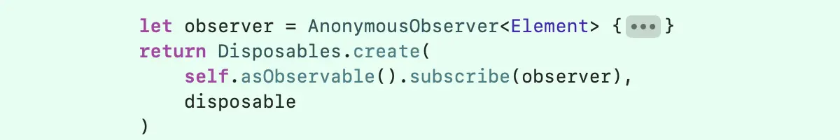 let ob = Observable<Any>.create { (obserber) -> Disposable in