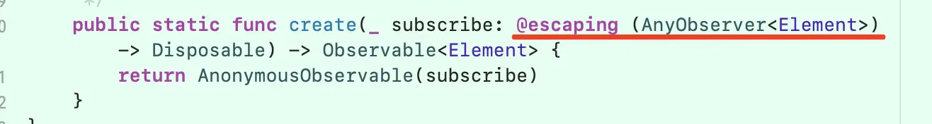 public static func create(_ subscribe: @escaping (AnyObserver<Element>) -> Disposable) -> Observable<Element> {