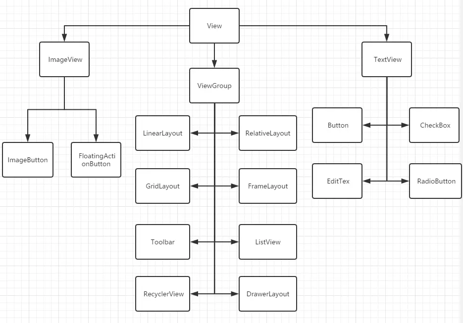 - ProgressDialog(进度提示框):ProgressDialog说白了就是在AlterDialog上添加Progress, ProgressDialog不需要在xml中进行配置,直接在代码中进行生成即可。下方是在按钮点击的委托代理方法中添加的ProgressDialog,点击按钮时就显示ProgressDialog。 下图给出View的继承关系,能够更好的理解布局、控件之间的关系: