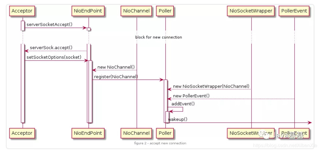 - addEvent() 方法会将 Socket 添加到该 Poller 的 PollerEvent 队列中。到此 Acceptor 的任务就完成了。