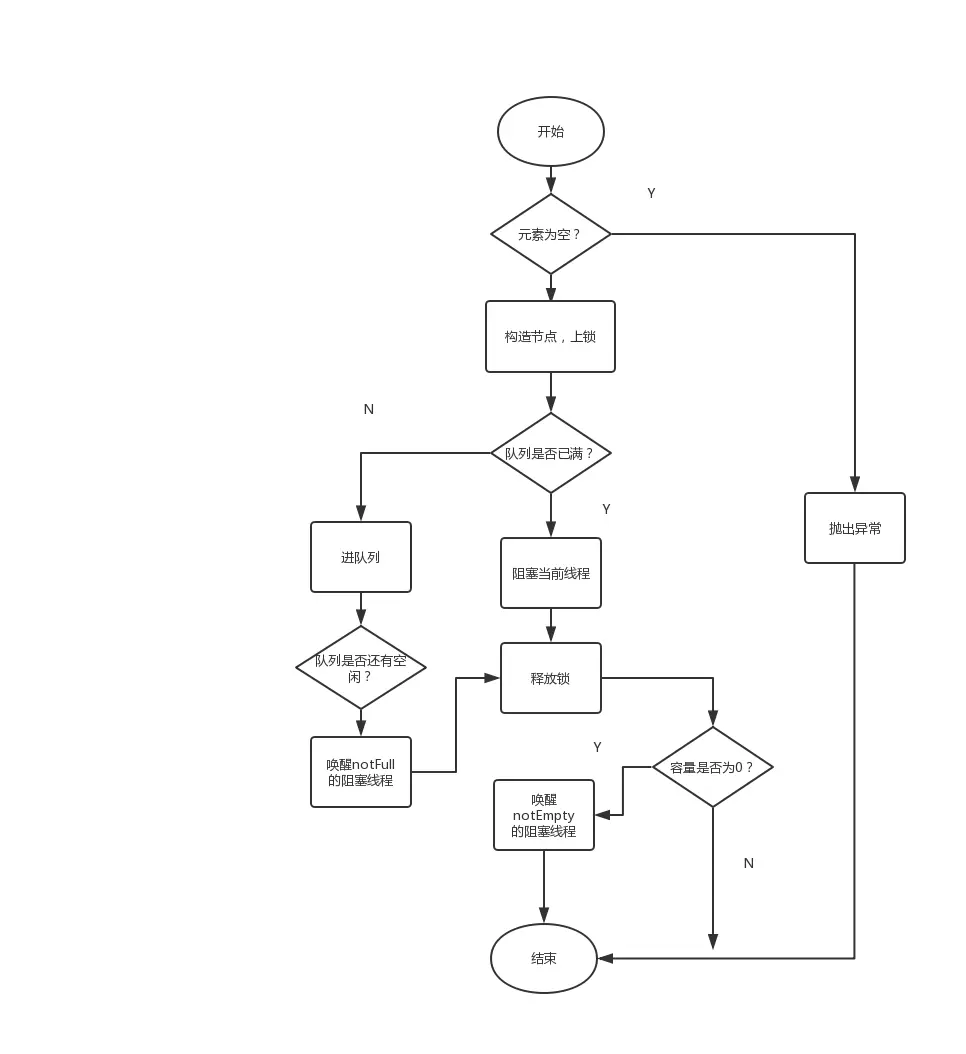 - 判断队列容量是否已满,如果是,唤醒notFull的阻塞线程。