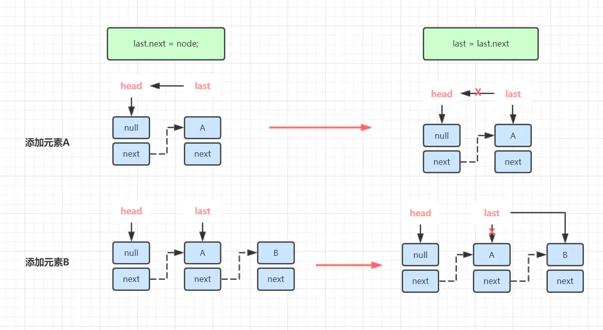 - 它有头尾两个节点,入队操作是从尾节点添加元素,出队操作是对头节点进行操作。