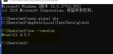 --前提 已经执行yarn global add @vue/cli命令安装好脚手架,显示success