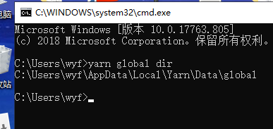 我们现在命令框中输入 yarn global dir 查找yarn的全局目录,找到后复制到资源管理器的地址中,打开.