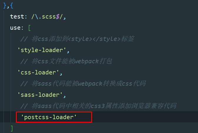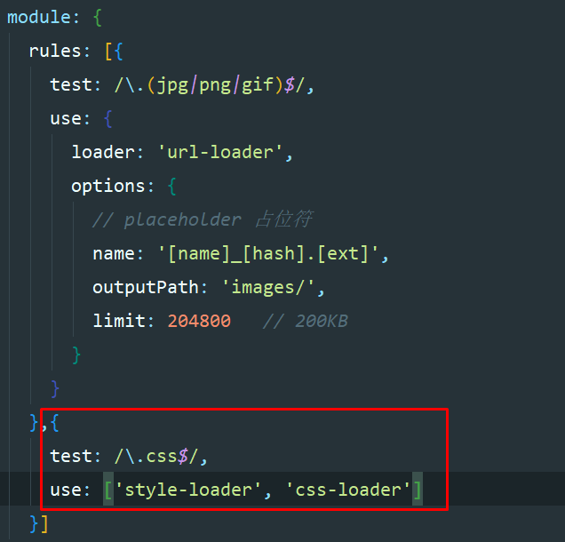 打开webpack.config.js进行配置,添加以下的配置,并下载style-loader以及css-loader,下载完成后重新打包