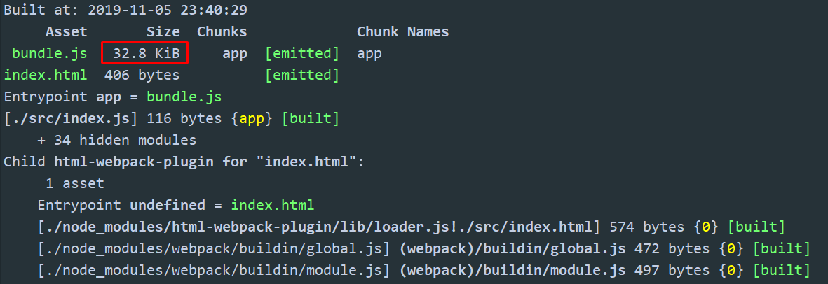 重新打包后发现bundle.js文件大小缩小到32.8KiB啦
