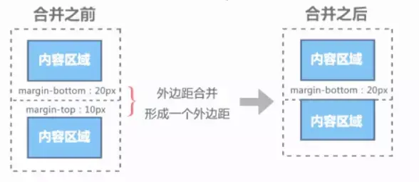 - 垂直方向,两个相邻元素都设置外边框,外边框会发生合并,合并后外边框 高度等于两个发生合并外边框的高度总中最大值。